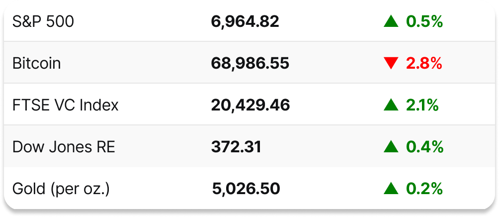 🏢 Top U.S. CRE markets: U.S. CRE investment sales volume was $472.6 billion in 2025, a 19.9% year-over-year gain, with the most deal volume coming in Dallas-Fort Worth, the San Francisco Bay Area, Los Angeles, and New York.