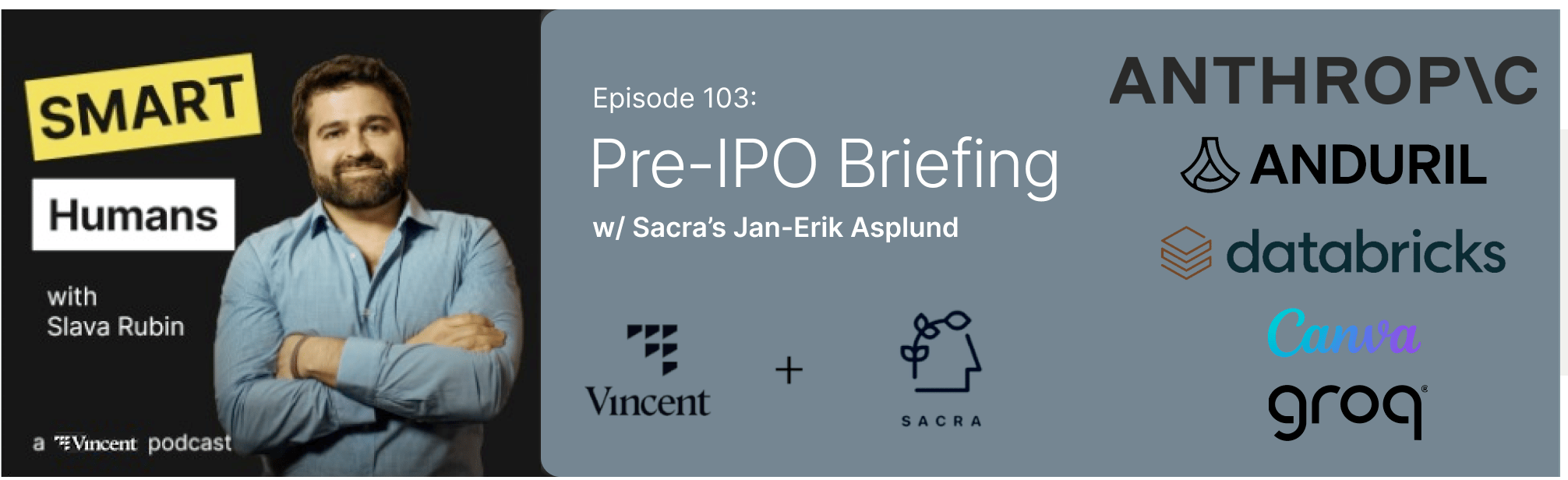 In the newest episode of Smart Humans, Slava Rubin and Sacra's Jan-Erik Asplund discussed Databricks, Groq, Anduril, Anthropic, and Canva, five of the hottest pre-IPO companies in the asset class - and how investors can get access.
